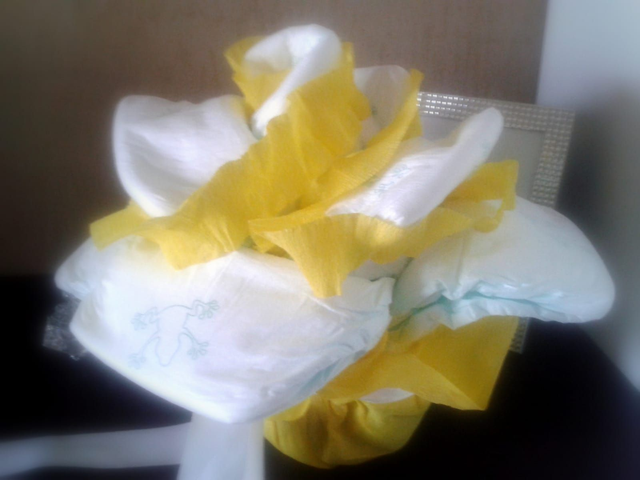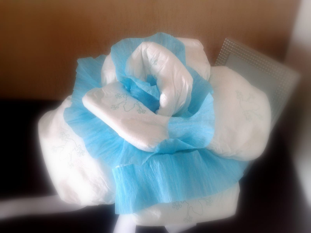 Elegante e delicata rosa di pannolini realizzata interamente a mano, pensata come regalo originale e raffinato per festeggiare la nascita di un bebè. Un’idea regalo che unisce estetica e utilità, accompagnata da un biglietto di auguri per rendere il dono ancora più speciale.